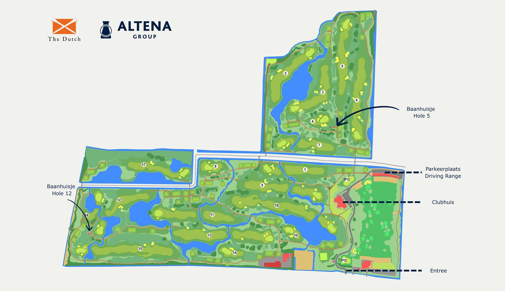 Bij aankomst meldt u zich bij de Main Gate van The Dutch. Na aanmelding rijdt u door naar het clubhuis, waar het hospitality team en de organisatie van Altena Group u persoonlijk verwelkomen.